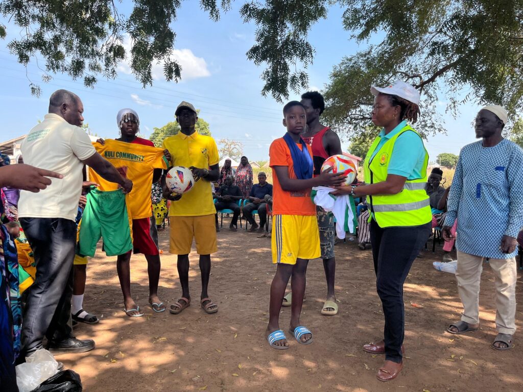 During the visit, the girls’ soccer club was divided into two teams and played a friendly match, to the delight and admiration of parents and community members—likely the first event of its kind in Kuli.