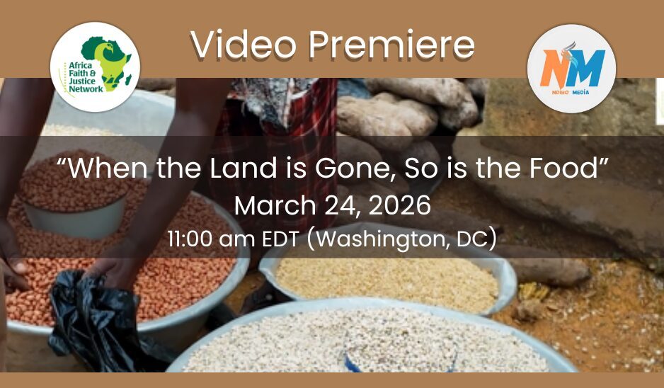 The Africa Faith and Justice Network (AFJN) and Different Perspectives with Paul Ndiho invite you to “When the Land is Gone, So is the Food” a special-live-broadcast screening and conversation on one of the most urgent challenges facing rural communities across Africa: land grabbing and its impact on food security, livelihoods, and community stability on March 24, 2026 at 11:00 AM (EDT).