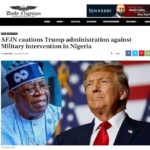 In the News: AFJN Quoted in Daily Nigerian on US Military Intervention 5 Nov, 2025 - On November 4, 2025, the Africa Faith and Justice Network was quoted in Umar Audu's “AFJN cautions Trump administration against Military intervention in Nigeria” article featured in Daily Nigerian.