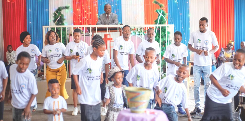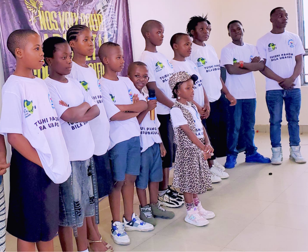 On August 30, we partnered with Saint Aloyse Catholic Church in Rutshuru to host a parish-wide concert featuring 13 youth choirs, bringing together nearly 1,000 singers in a powerful celebration of peace and unity.  On the International Day of Music (September 21), the parish outstations of Rubare organized peace-themed Masses where choirs wore specially printed t-shirts bearing the message “Let us live together without tribalism.” This initiative aligned with the Congolese Bishops Conference’s peace message, which was read during Mass.   Additionally, five Protestant churches opened their doors to welcome the peace message, inviting children to sing during regular gatherings. In these settings, the voices of children—innocent yet powerful messengers of peace—moved hearts and inspired minds, reminding communities of the possibility of reconciliation and coexistence.